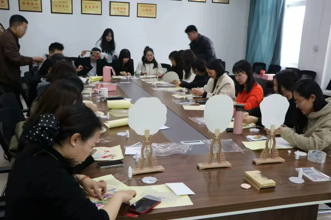 在制作过程中,教师们相互交流、分享经验。大家在享受手工乐趣的同时,也增进了彼此之间的情谊。经过一番精心创作,一把把独一无二的压花团扇在老师们的巧手下诞生,每一把团扇都凝聚着教师们的智慧与艺术气息。