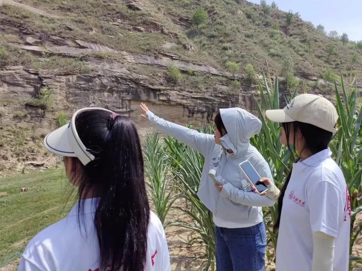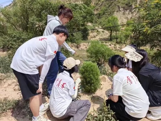 在调研过程中,同学们发现地表被黄土所覆盖,土壤质地类型单一,并在老师的带领下一同认识耐旱植物,加深了对于米脂县乡村自然环境的认识。
