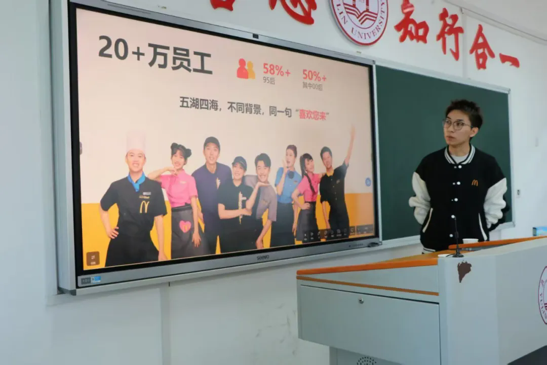 宣讲会上,企业HR详细介绍了公司的发展历程、人才培养体系以及多元化的职业机会。麦当劳作为全球领先的餐饮企业,不仅为员工提供完善的培训体系,还致力于打造包容、创新的工作环境,助力每一位员工成长。