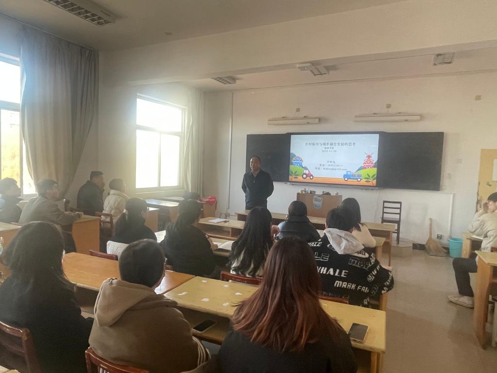 讲座以“乡村振兴与城乡融合发展的思考”为题,罗新远教授以县域经济发展为乡村振兴的中心,重点介绍了乡村振兴的价值、城乡融合发展的历程等几个方面。此外,罗新远教授还结合自己基层工作经验和体会,提出了若干城乡融合发展的瓶颈,介绍了乡村建设的复杂性,并耐心回答了在座师生学术问题。
