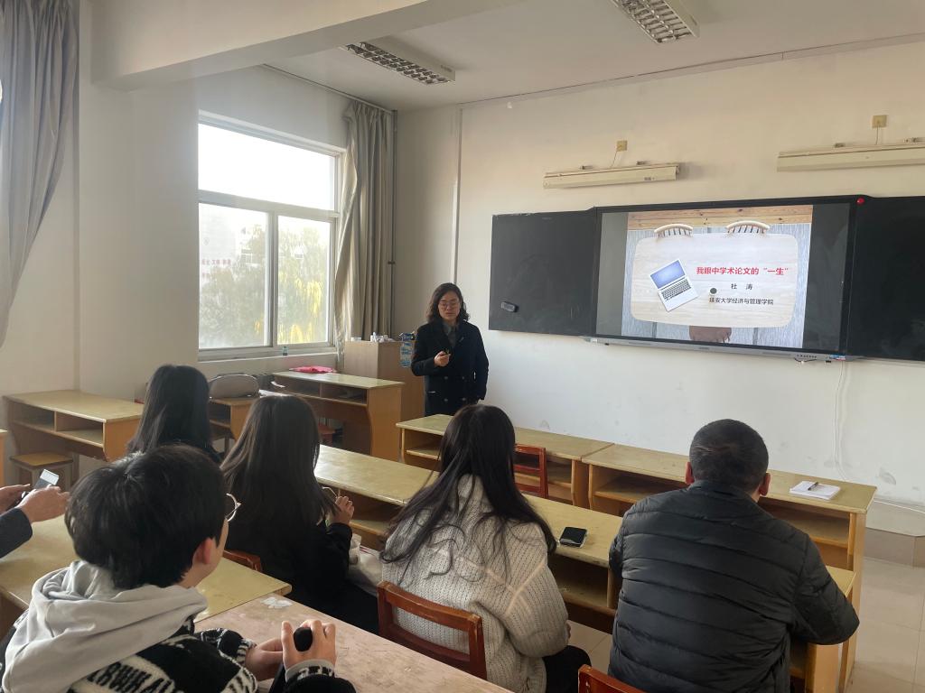 报告以《我眼中学术论文的“一生”》为题在6312教室举行,杜教授先以孕育期、成长期、成熟期、稳定期、衰退期、灭亡期/复活期六个时期,为我们讲授了撰写一篇学术论文从初稿的选题到定稿后的收录的经验,她鼓励在座研究生多学多问,实事求是,杜绝学术不端行为;更为研究生提出了多方面的建议,对公司研究生成长成才大有裨益。