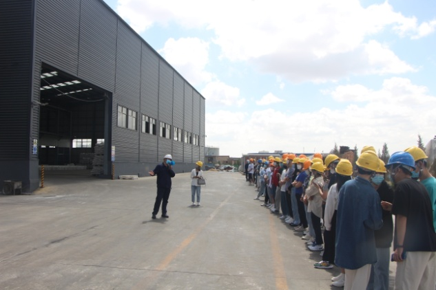在腾达兴能源有限责任公司,公司师生一行先后参观了石油焦煅烧一、二期生产区、液碱加工片碱生产区等场地。在调研中,公司主要围绕推进能源产业高质量发展低碳化建设和推进精细化管理在科研生产、企业管理工作、后勤安全保障及提高生产质量和增强科研水平方面的技术优势和相应举措等方面展开调研。