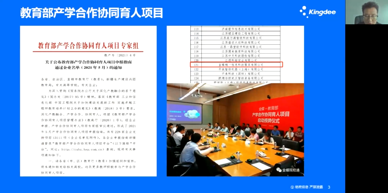 3月31日下午,公司与金蝶开展了基于产教融合下的校企合作线上分享交流会,双方就英国365集团官网会计学、财务管理专业在数字化时代背景下进一步合作进行了有益交流和探讨。