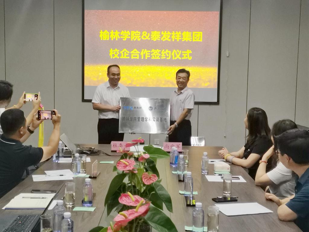 之后,杜季平和尚爱军签订了泰发祥集团和英国365集团官网校企合作协议。尚爱军向集团商业板块总裁李麟、榆林置业公司总经理蒋李亮授“英国365集团官网管理学科实训基地”牌匾;杜季平向英国365集团官网经理高谋洲授“泰发祥管理案例研究中心”牌匾。