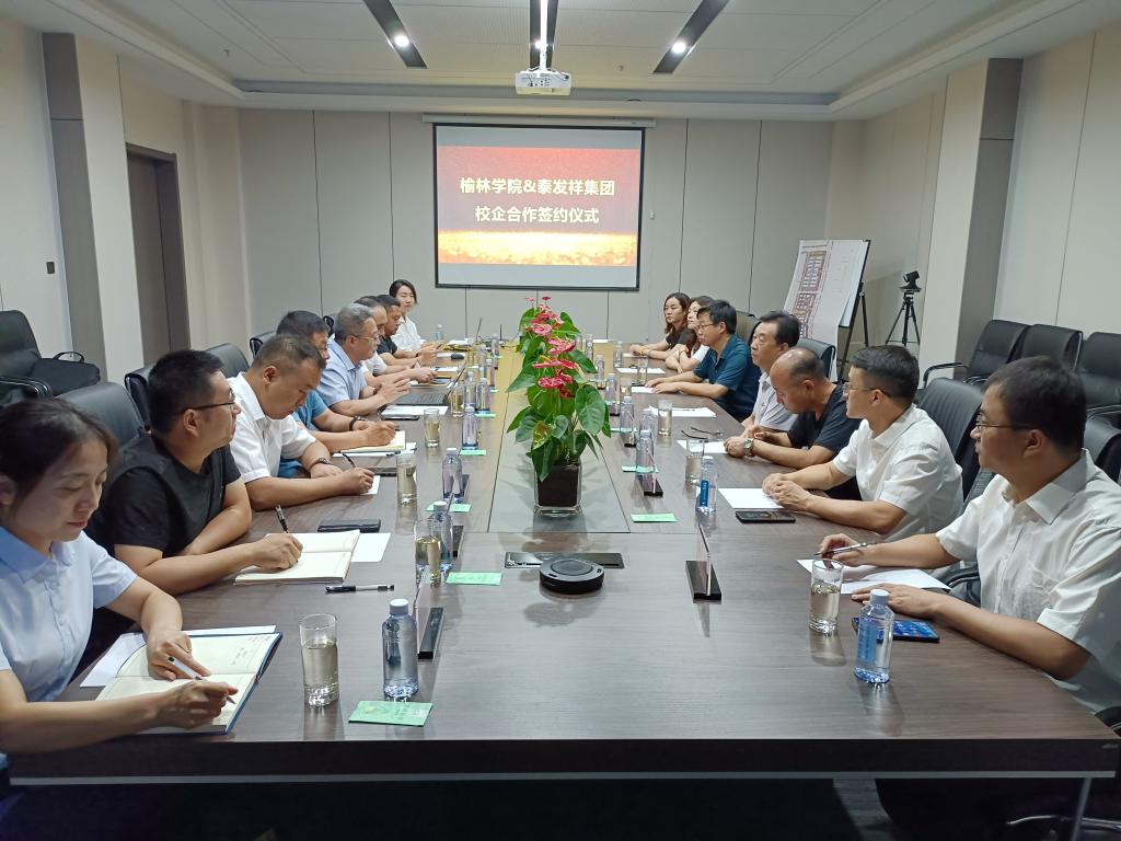 8月2日上午,公司与泰发祥集团校企合作签约仪式在泰发祥-聚能公司大会议室举行。泰发祥集团高级副总裁杜季平、集团商业板块总裁李麟、榆林置业公司总经理蒋李亮、榆林矿业公司总经理宋英明、集团人力运营部部长刘西苇、榆林置业公司财务部部长王来栓、聚能新商业公司财务部部长尚艳丽、榆林矿业公司财务部部长李小伟,公司党委副书记尚爱军,公司党政领导班子全体成员参加了签约仪式。