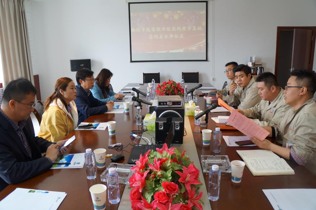 座谈会上,张伟代表公司对校方人员表示欢迎,并介绍了公司的发展概况。张伟表示公司属于民营企业,是以转化工业园区周边工业固废为建材的环保型循环经济实体。随着公司的发展壮大,面临一些问题与困境亟待解决。尤其是产品的市场营销与推广,专门人才的引进与培养,现代企业管理体系的创建与发展。李春和梁帅结合企业现状就人才资源的引进与培养进行了交流,同时表示公司对于会计和财务管理的人才也有需求,并可提供相关实习机会。