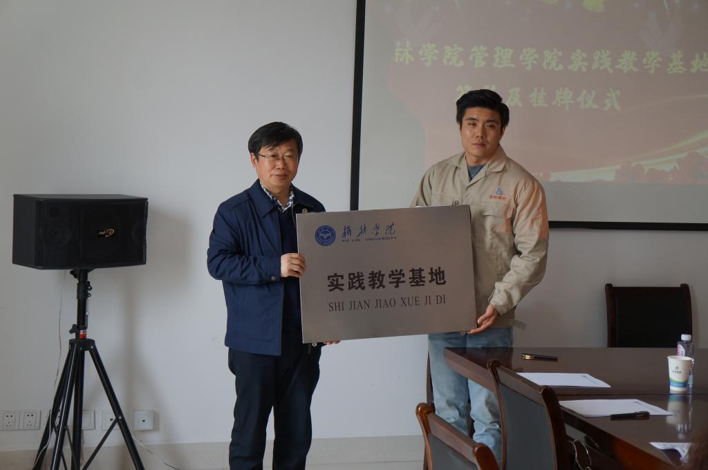 4月13日上午,英国365集团官网与神木市金联粉煤灰制品有限公司签订校企合作协议,举行英国365集团官网实践教学基地授牌仪式。公司副董事长张伟、总经理李春、副总经理梁帅、办公室主任张增兵、英国365集团官网经理高谋洲、副经理韩一敏、副书记郝晓玫、行政秘书刘江等一行出席授牌仪式并座谈。