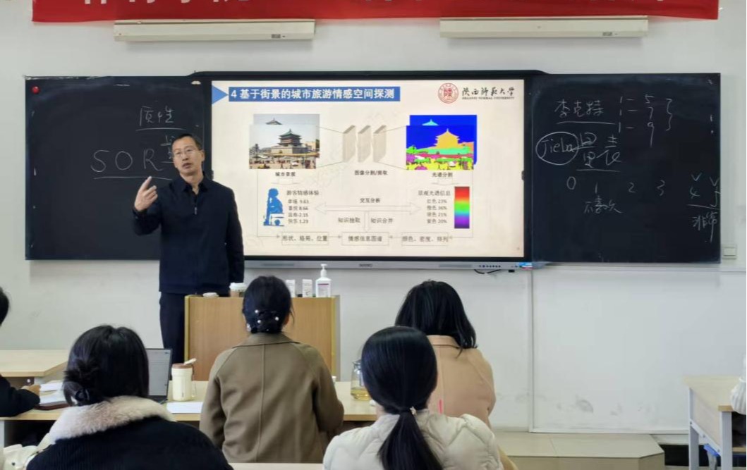 讲座中,李教授以 “非惯常环境” 为核心视角,融合情感地理学、恢复性环境理论,创新性构建 “景观→情感体验→旅游恢复性” 链式机制,情感在地理学“情感转向”背景下,成为理解人地关系的新视角,情感在旅游相关研究中至关重要,它影响着游客的体验和决策。恢复性环境与非惯常环境相关,恢复性环境能帮助人们从日常压力中恢复,是旅游环境的重要特性。景观与恢复性的关联,涉及游客在非惯常环境中的体验,旅游恢复性则聚焦于旅游活动对人的恢复作用。;研究案例则为理论提供实践支撑。各部分相互关联,共同构成完整的研究体系。最后通过结合西安情感地图、水景观实验、城市街道游览景观对比等实证案例,直观呈现景观类型、形态对游客恢复性的影响规律。